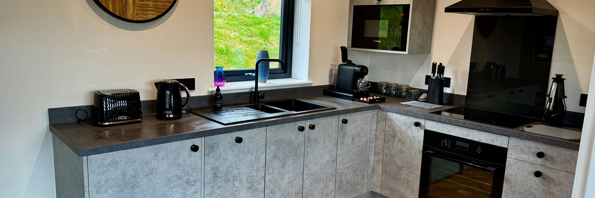 Heatherbank Cabin is a newly built one bedroom bungalow completed in May 2025, it sits privately only 3km from the centre of Portree. The cabin offers a wonderful location for exploring Skye, sych as the Old man of Stor and the Quiraing only a short drive away. The cabin is finished to a very high standard with open plan kitchen, dining and living area, a spacious superking bedroom or twin and a luxury bathroom.